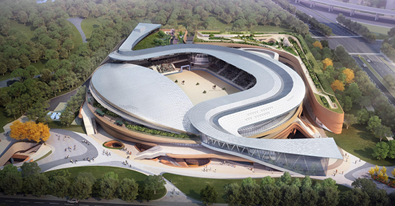 項(xiàng)目概述: 上海久事國(guó)際馬術(shù)中心,位于黃浦江畔世博文化公園南部,是世博文化公園南區(qū)重要和特殊的組成部分,國(guó)內(nèi)首座符合國(guó)際頂級(jí)馬術(shù)賽事標(biāo)準(zhǔn)的專業(yè)性比賽場(chǎng)館。場(chǎng)館總建筑面積8.2萬(wàn)平方米,主體建筑高度15米。該項(xiàng)目選址浦東新區(qū)世博文化公園C04-01a地塊,南臨通耀路,西臨濟(jì)明路,總用地面積3.32公頃,主體建筑包含1個(gè)90X60米的競(jìng)賽場(chǎng)地、熱身場(chǎng)、訓(xùn)練場(chǎng)和高規(guī)格馬廄,以及約5000座觀眾與貴賓看臺(tái)等設(shè)施。