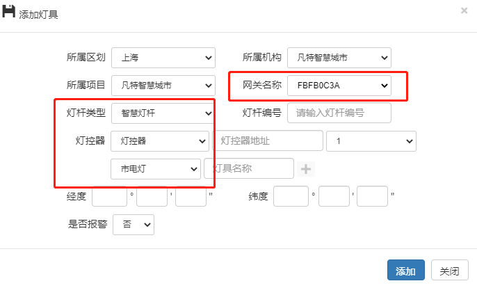 在添加網(wǎng)關(guān)的基礎(chǔ)上添加燈控器:配置:燈具配置:添加如下圖:燈控地址為燈控器白色貼紙的物理地址